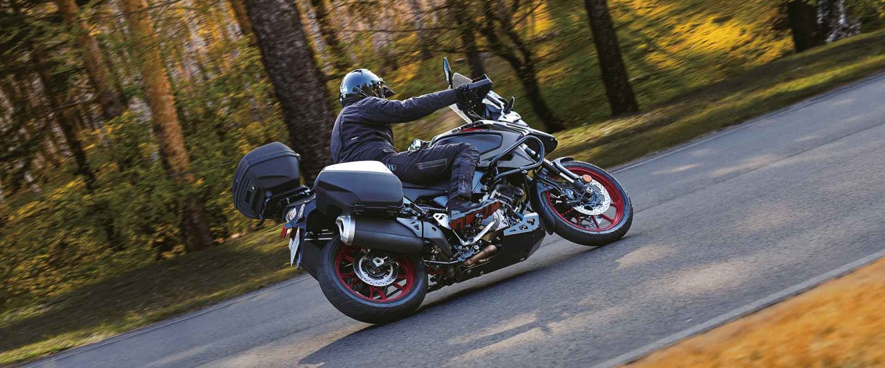 Čtyřtaktní motor Suzuki V-twin DOHC s objemem 1037 cm³ a úhlem rozevření válců 90° vyniká silným lineárním točivým momentem ve středním rozsahu otáček a unikátní charakteristikou v průběhu otáček, která maximalizuje výkon při vysokých otáčkách. Jeho charakteristický hukot a zvuk výfuku je také unikátní, ale téměř nepopsatelný – musíte ho slyšet na vlastní uši. Uspořádání do V umožňuje také štíhlejší konstrukci podvozku s nižším těžištěm, což přispívá ke hbitějšímu řízení a lepší ovladatelnosti. Motor poskytuje plynulý a předvídatelný průběh výkonu, který oceníte jak při klidné cestovní jízdě, tak při dynamickém průjezdu zatáčkami.
