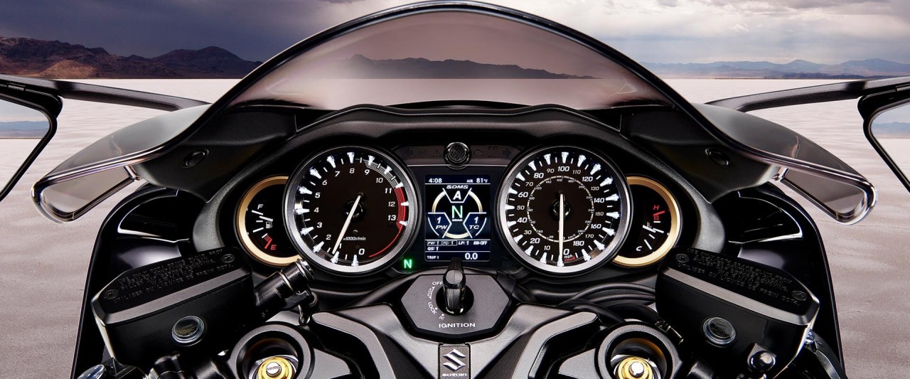 Jezdci milují známé rozložení a vynikající funkčnost přístrojové desky HAYABUSY. Velký barevný TFT displej poskytuje přehledné zobrazení všech důležitých informací o jízdě a nastavení elektronických systémů. Displej nabízí několik režimů zobrazení přizpůsobených různým jízdním situacím a je snadno čitelný za všech světelných podmínek. Intuitivní ovládání a logické uspořádání informací zajišťují, že máte vždy perfektní přehled o všech funkcích motocyklu.